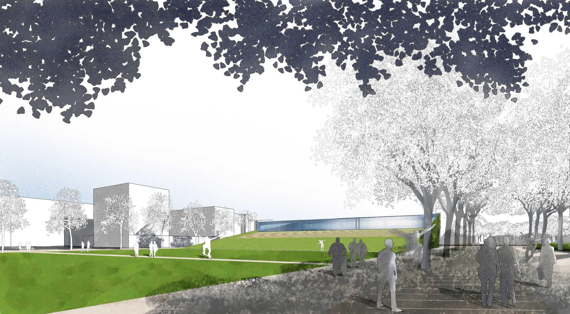 Das Entwurfskonzept des Projektes Stadt Land Fluss basiert auf der städtebaulichen Konzentration der Lehrenden und Sozialen Einrichtungen zu einem städtischen Campus und der großzügigen Öffnung eines Sport- und Freizeitgeländes zu einem ländlich geprägten Park.