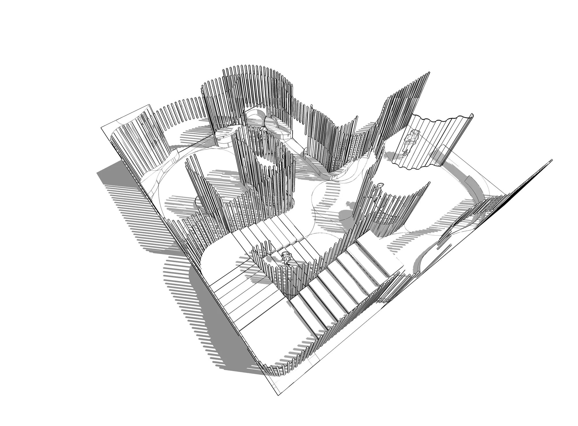 Das übergeordnete Gestaltungskonzept basiert auf der Kombination einzelner Wohnhäuser, den Gruppenräumen, die in einer Waldlandschaft aus Bambus eingebettet sind.