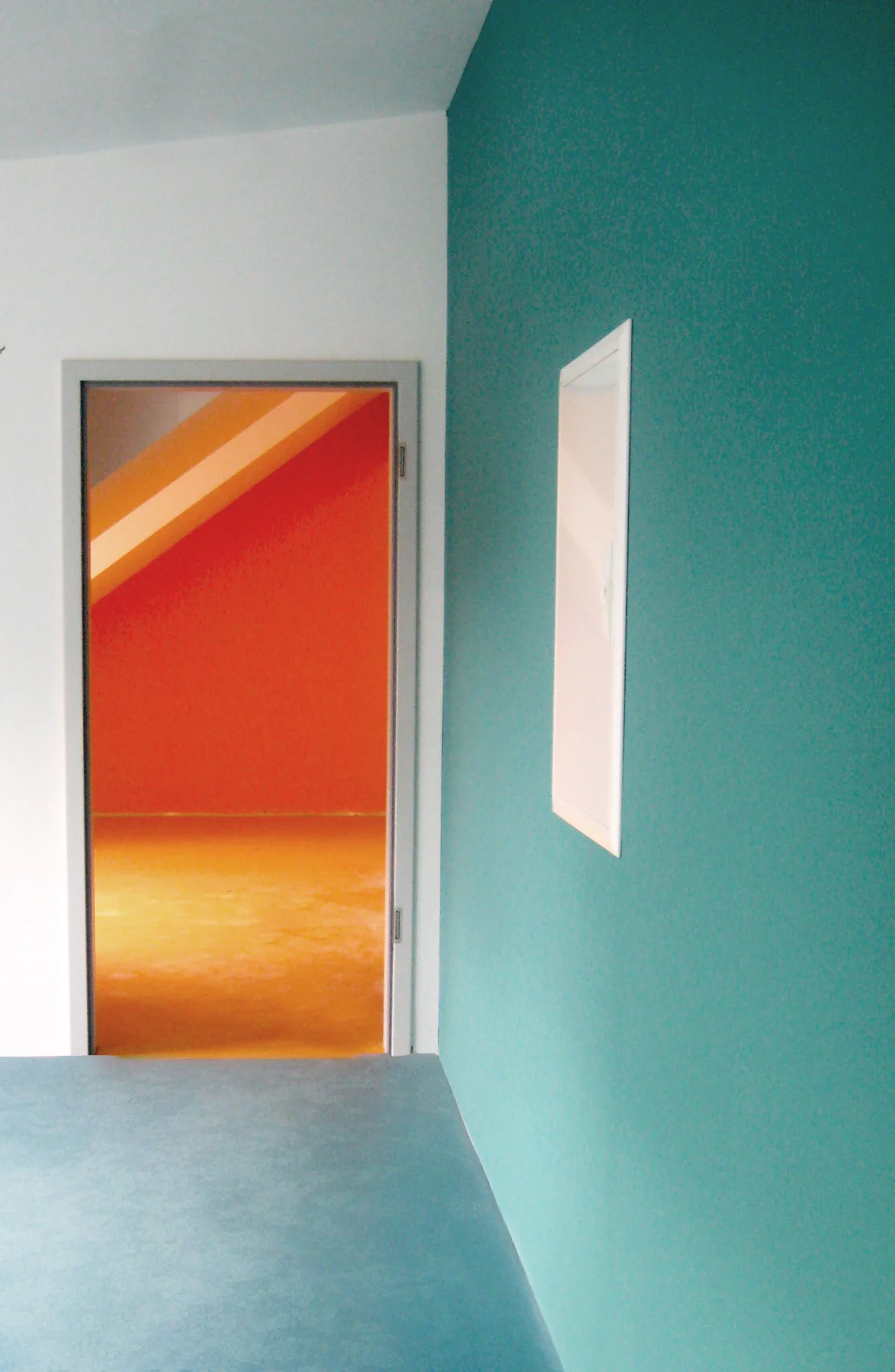 Dieses Farbschema wurde am Boden, an den Wänden und auch bei den Leuchten angewandt. Durch leichte Farbnuancen, hervorgerufen durch unterschiedliche Materialien entstand ein besonderes Farbspiel.