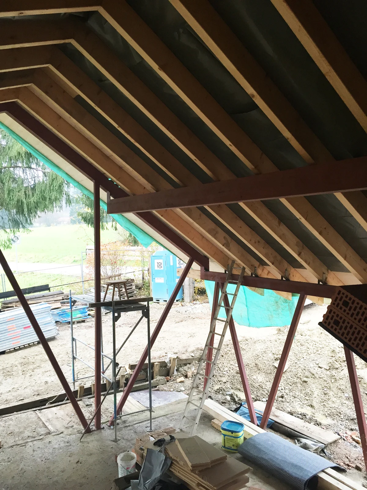Im Sinne der Architektursprache traditioneller oberbayerischen Bauernhöfe wurde das Bestandsgebäude um einen Trakt erweitert, der in seiner Erscheinung an die FachwerkHolzbauweise der Ställe und Tennen erinnert, die den Wohnhäusern der Bauernhöfe beigestellt werden.