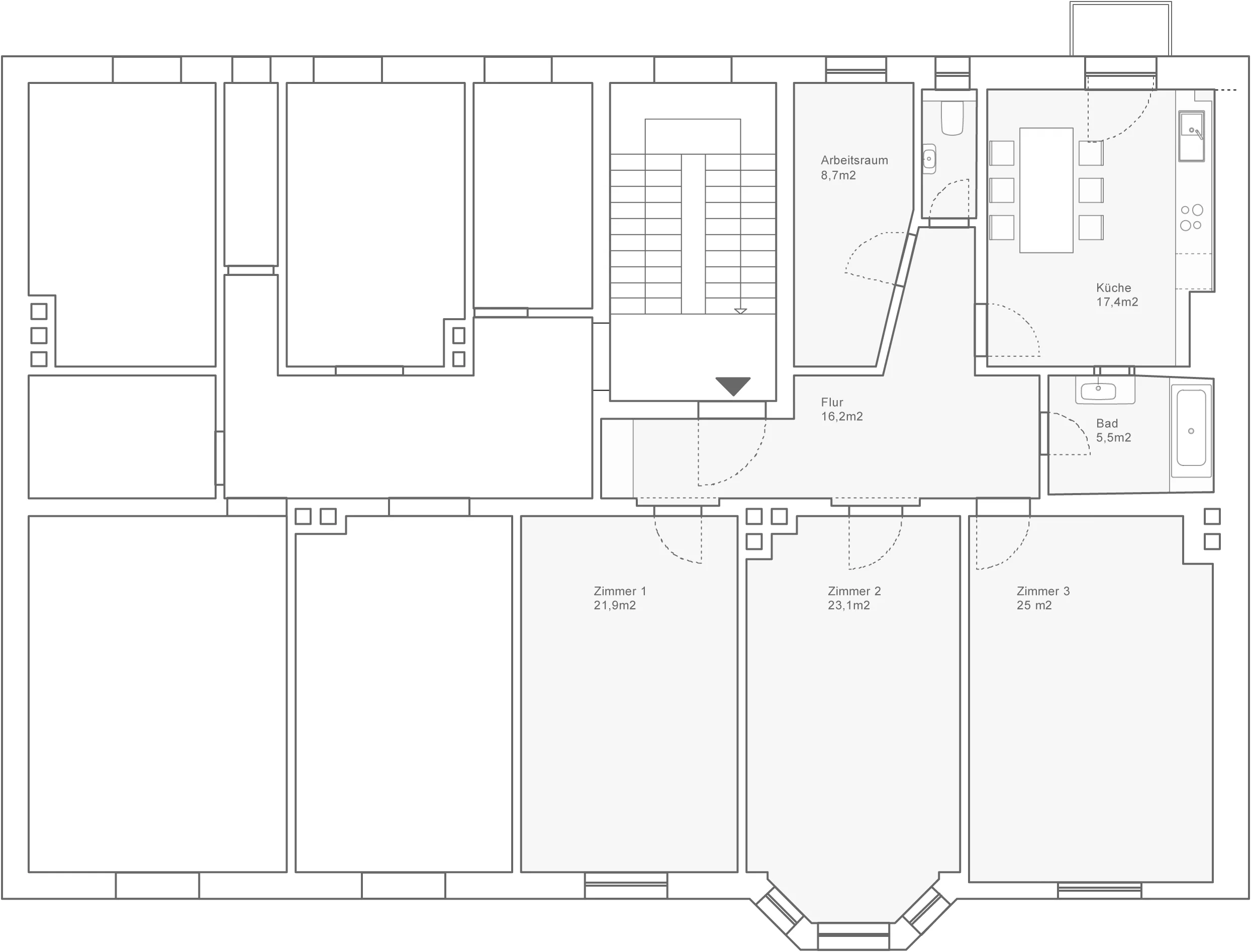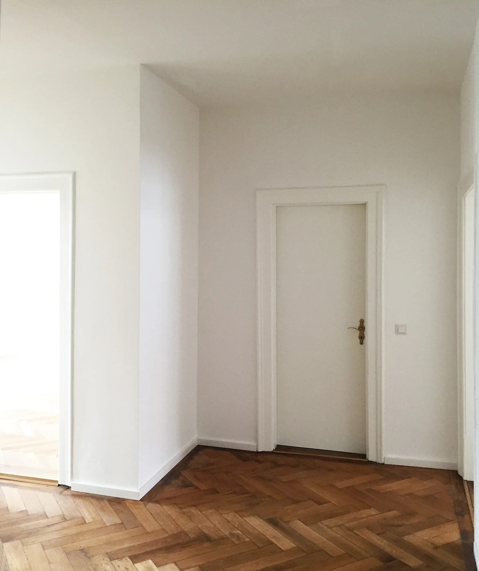 Im Rahmen einer schrittweisen Sanierung der Fassade eines Mehrfamilienhauses aus dem 19. Jahrhundert in der Agnesstraße in München wurden eine leer stehende Wohnung komplett saniert. Die Maßnahmen umfassten neben der kompletten Erneuerung der technischen Gebäudeausrüstung vor allem das Aufarbeiten des größtenteils noch vorhandenen historischen Holzbodens und Stucks. Darüber hinaus wurden teilweise die Deckenkonstruktionen aufwendig statisch ertüchtigt. Da die umliegenden Wohnungen bewohnt waren, wurde besonderes Augenmerk auf eine behutsame schrittweise Sanierung gelegt. In Zusammenarbeit mit der Künstlerin Ursula Fuchs, die im Anwesen Ihr Atelier hat, wurde ein besonderes Farbkonzept für die Gestaltung des Stucks im Treppenhaus entwickelt.
