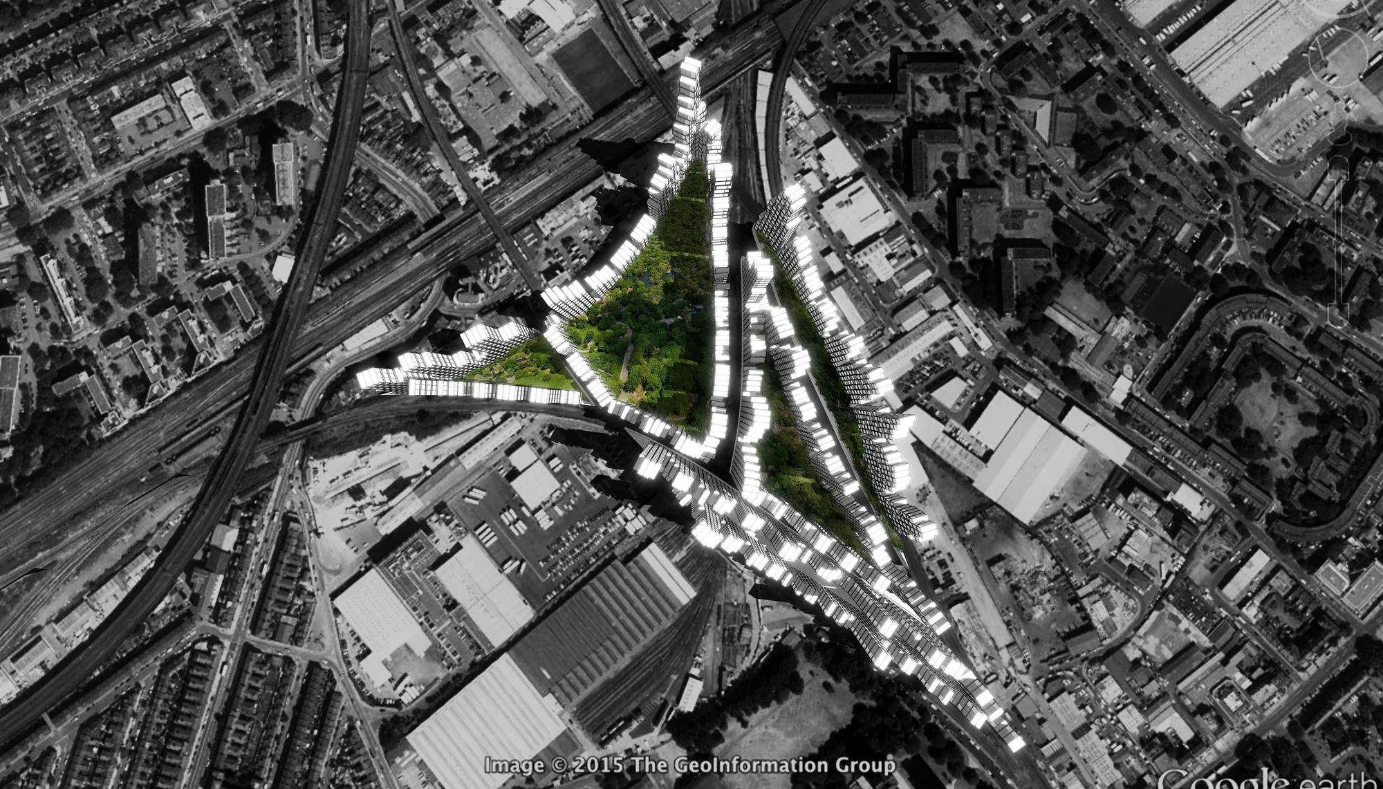 RandomVoids uses the potential of inner-town leftover spaces due to infrastructural geometry, compensating the deficits of the surrounding urban infrastructure and improving housing supply within London boundaries.