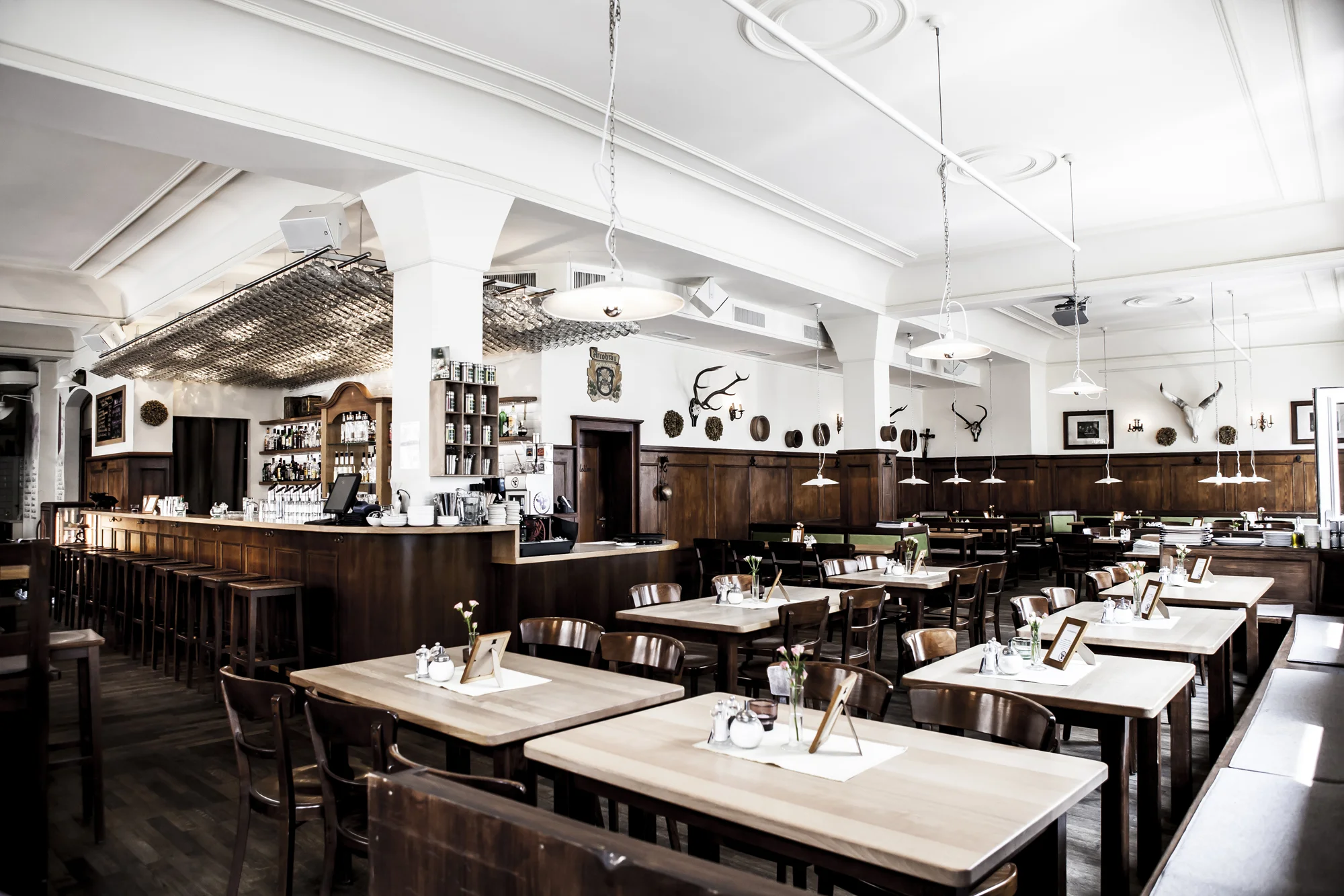 Hirschgeweihe, grün gefärbtes Kuhfell, die Bar als „Bierhimmel“ und viele weitere Details machen das KvR zu einem gemütlichen Wirtshaus der Gegenwart.