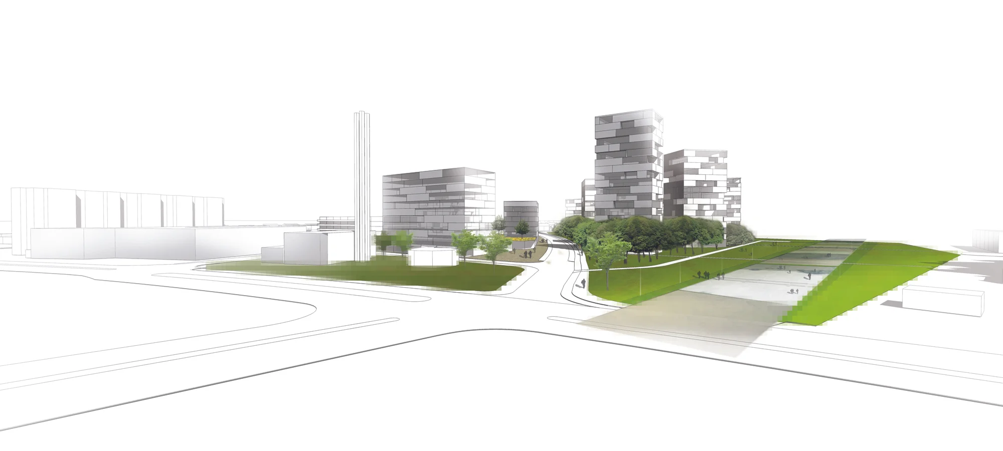 „Gartenstadtpark“ ist eine städtebauliche Antwort auf die Heterogenität der Nachbarschaften durch die Entwicklung von drei, sich gegenseitig ergänzenden Quartieren, die mit den angrenzenden Quartieren in Dialog treten und zu einem neuen Viertel verschmelzen.