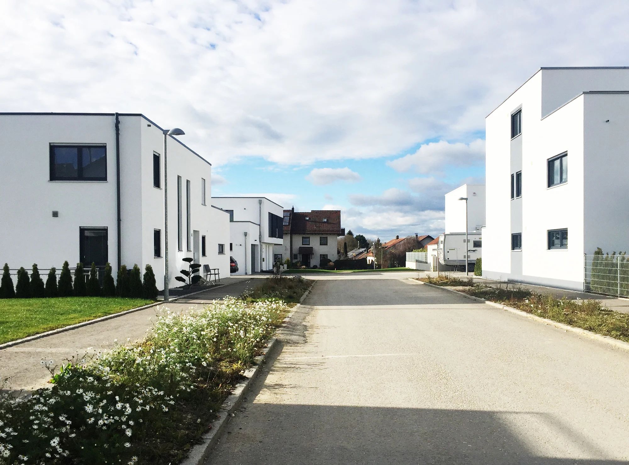 Im Rahmen der Vorgaben des B-Planes wurde eine Vision für ein kleines Dorf entwickelt, mit Häusern gleichen Charakters, aber unterschiedlicher Größe und Komponenten. Je nach Lage und Grundstücksgröße werden die Häuser großzügige Nachgärten, Wintergärten, Balkons und Terrassen besitzen.