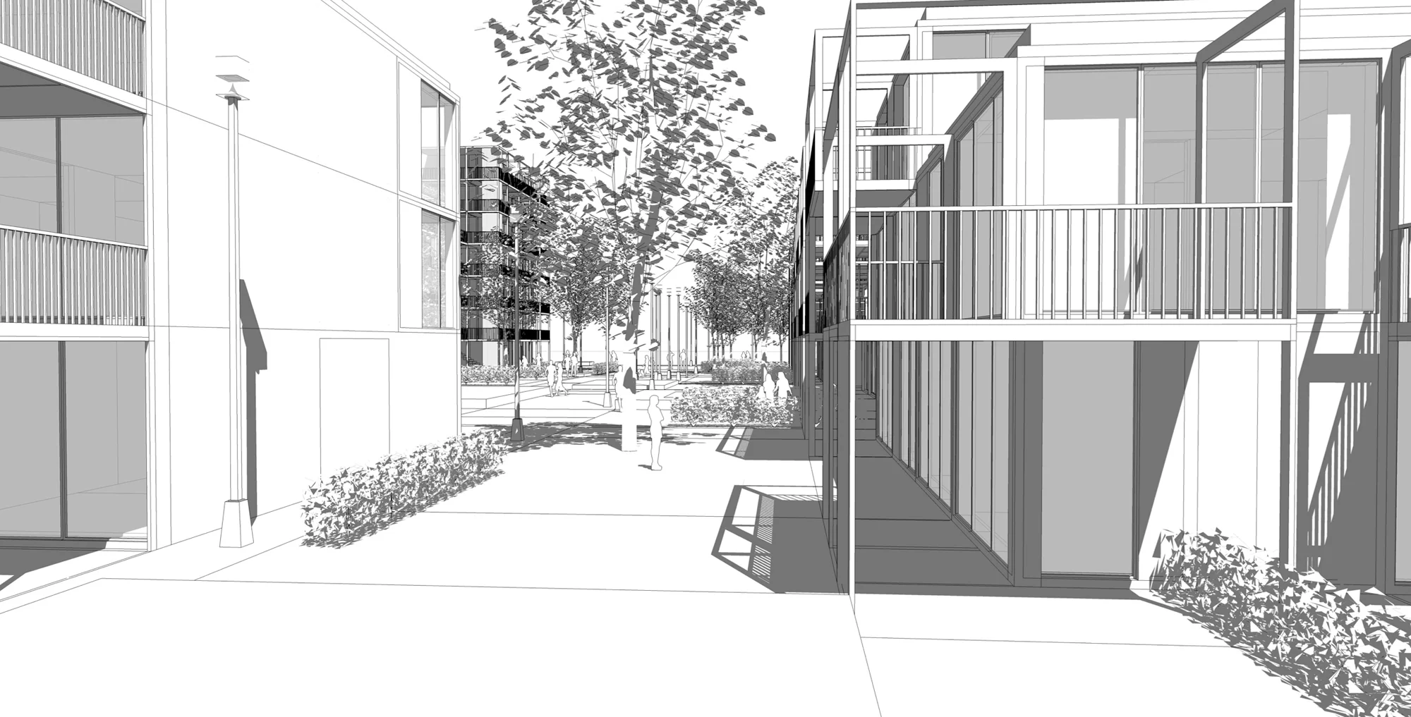 - Klare Trennung des privaten und öffentlichen Grüns zu Gunsten eines nachhaltigen, zusammenhängenden Naturraumes und einer urbanen und durchmischten Nachbarschaft.
