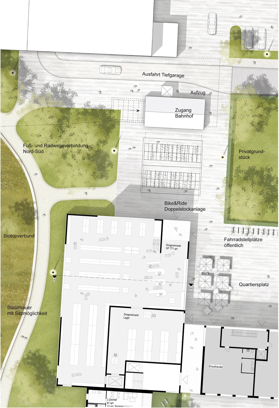 - Große Bedeutung muss dabei nicht nur den öffentlichen, sondern auch den halböffentlichen Freiräumen zukommen, zur Naherholung und für Begegnungszonen für die Bewohnerschaft.